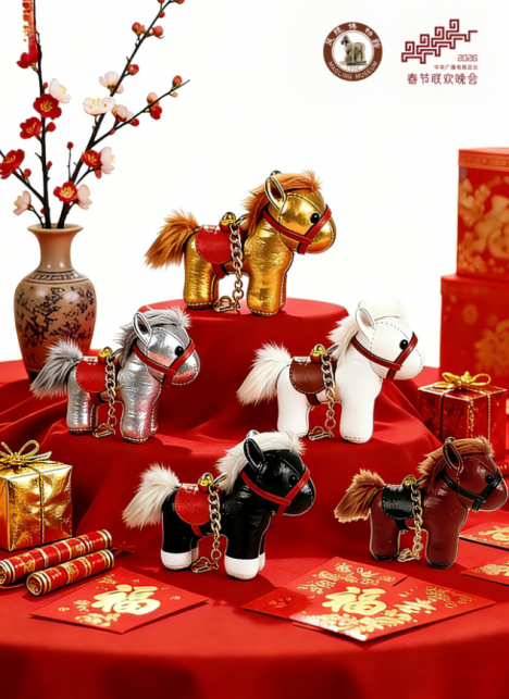 同步推出的马年挂饰盲盒——“骐骥福盒”则以“马”为核心文化意象,深度融合文博资源与春晚IP,系统梳理中国名马文化谱系:从楚汉争霸中的“里飞沙”,到三国传奇里的“赤兔马”,也将茂陵博物馆“镇馆之宝”作为隐藏款融入其中。这些承载忠义、勇毅精神的历史符号,在现代设计语言的诠释下焕发新生,构建起一条从神话传说到文物实证、从精神象征到生活美学的完整文化叙事链。
